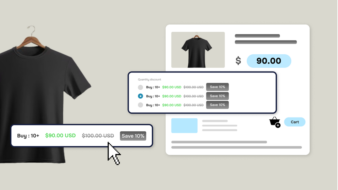 Setting Up Discounts: In the dropdown for type, choose ‘quantity discount’. Label and name this option as per your preference. For the discount settings, specify the quantity thresholds and the corresponding discount percentages. For instance, set a 10% discount for 10 items and 20% for 20 items. The intuitive interface will automatically apply the discount based on the quantity chosen by the customer.